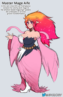 Aife is the twin sister of Scathatch, the world's strongest woman. Thought to be the greatest living spellcaster on Midgard, she was once a beautiful young magician though a thirst for knowledge led her to tamper with black magic. As her power grew her mind unraveled. Aife no longer resembles herself, forever altered by the eldritch magic that's overtaken her. It's believed that she is the origin point for all witches in Mortal Mythology.