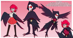 The middle child of the Morrigan sisters. A half-harpy bibliophile, she spends much of her free time reading the stories the mortals left behind. She feels connected to humanity in a way that most deities don't, as mortals were seen as cattle for the sake of harvesting their worship. Ana wishes she could've known mortals and feels drawn to their abilities to dream. Mortals felt like they could be anything, but deities have to represent something specific, decided long before they are born. Ana recently discovered manga, and she seems to be the right age for it, and now spends most of her time fantasizing about becoming a magical girl. Could a deity be one?