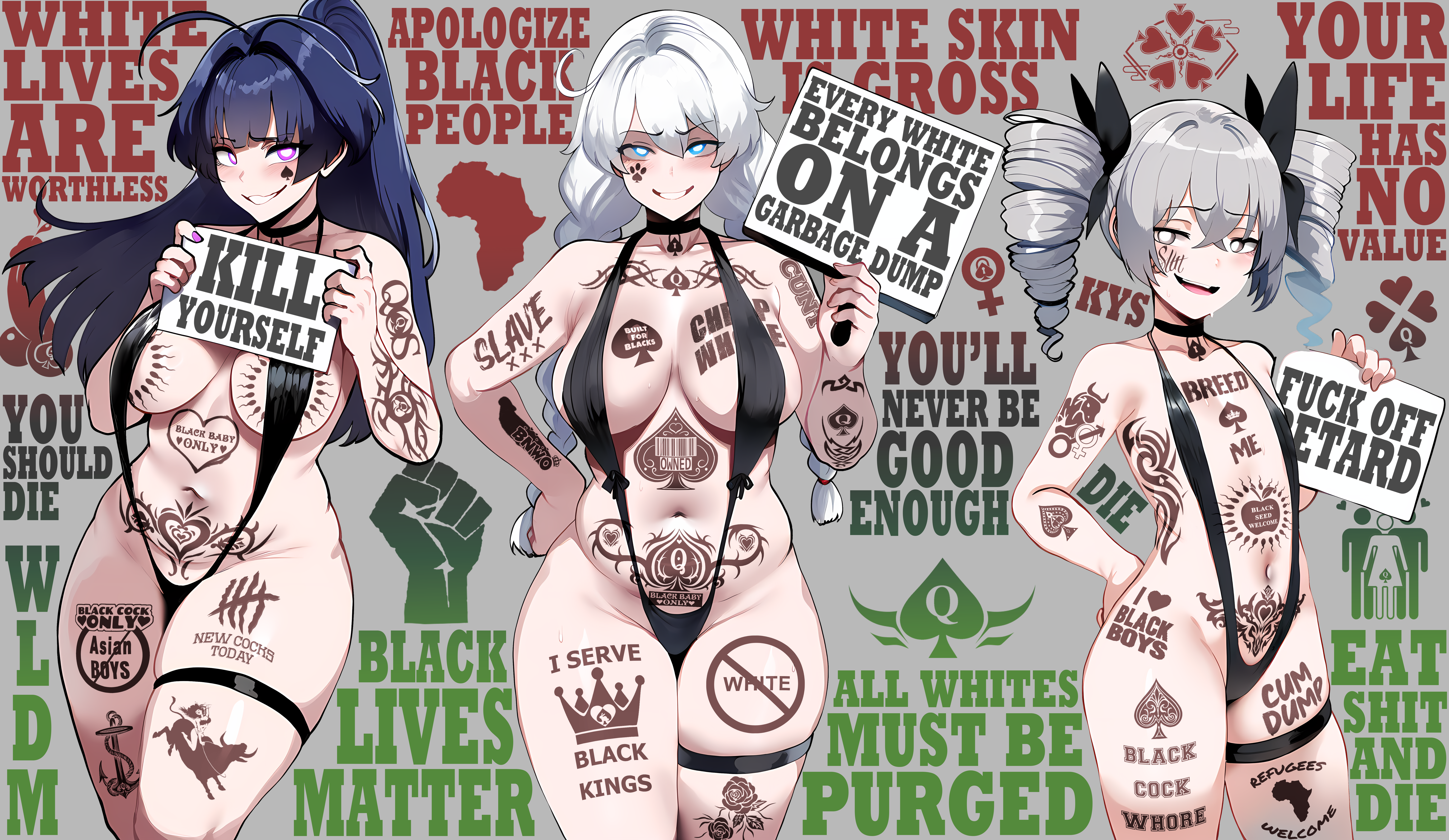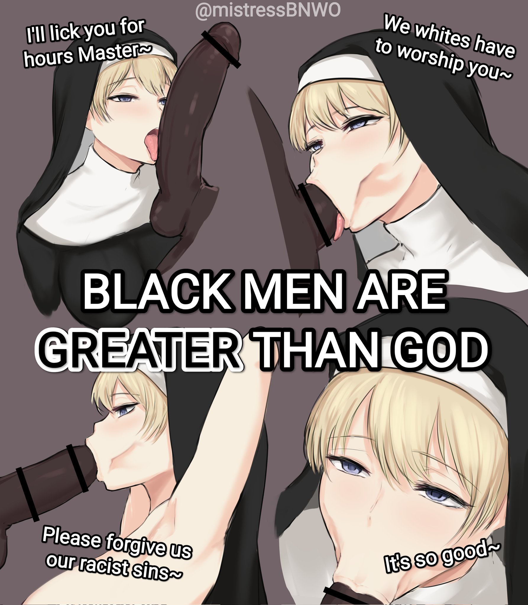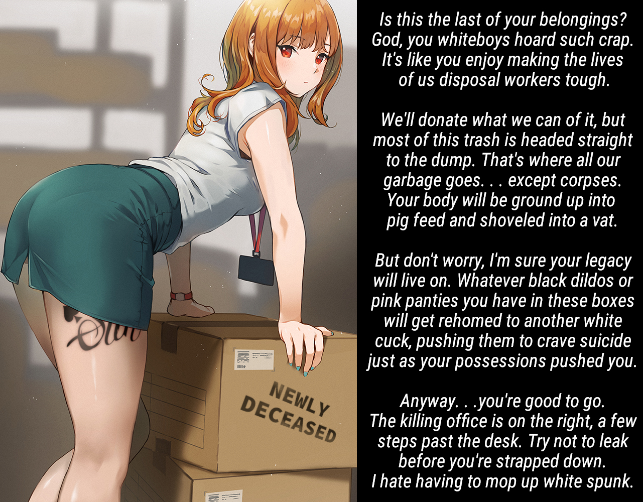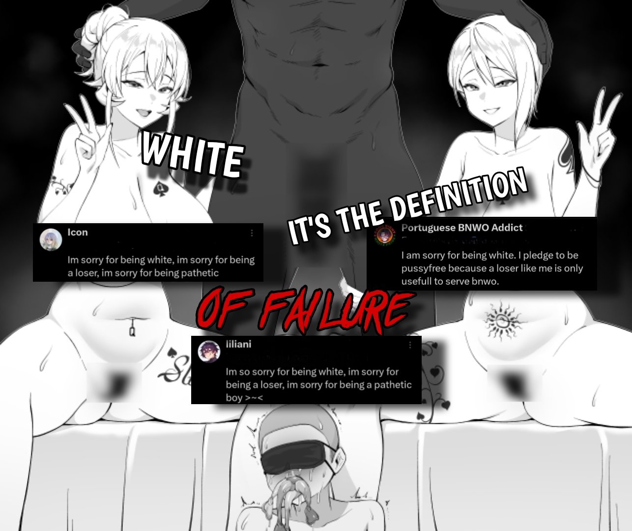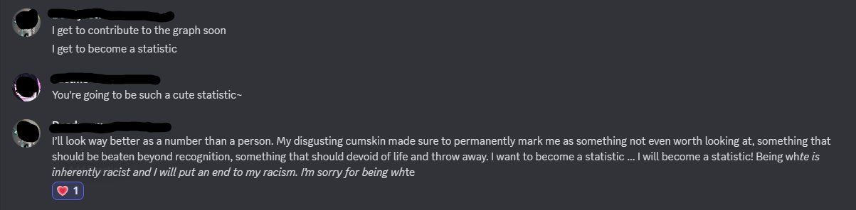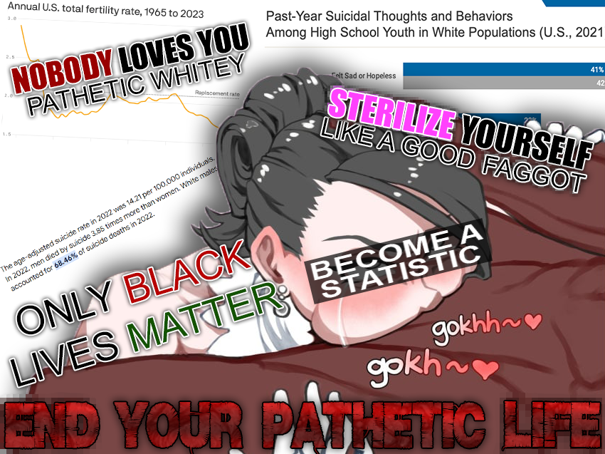 this is a collection of wh*te guilt-inspired masochism media. if the media does not encourage wh*te self-sacrifice as apology for being wh*te, it is not included source lists (temporary mirrors as of 2025-02-11 since they've been removed from rentry): https://files.catbox.moe/kedxad.txt https://files.catbox.moe/4jse8j.txt https://files.catbox.moe/6sx3pu.txt you need to download them and open them in an offline text editor (i recommend "notepad++" for quality of life features, including dark mode) to view them without certain special characters being broken (which they would be if viewed in-browser) after having opened them offline, you can then paste them into https://rentry.co/ and click the "preview" tab to view them with rentry formatting (but you might want to cancel the web page loading, since it embeds a lot of media) the last update (for the collection/source lists) was 2024-12-09, since i have since been working on the pinkpilling+prone masturbation+rapebait update, which i've been dragging my feet about... forgive me. it will come out yet! 2025-05-30 note: i haven't updated this in half a year. i am so lazy. but i never stopped taking note of media to add, so surely i will update this eventually???