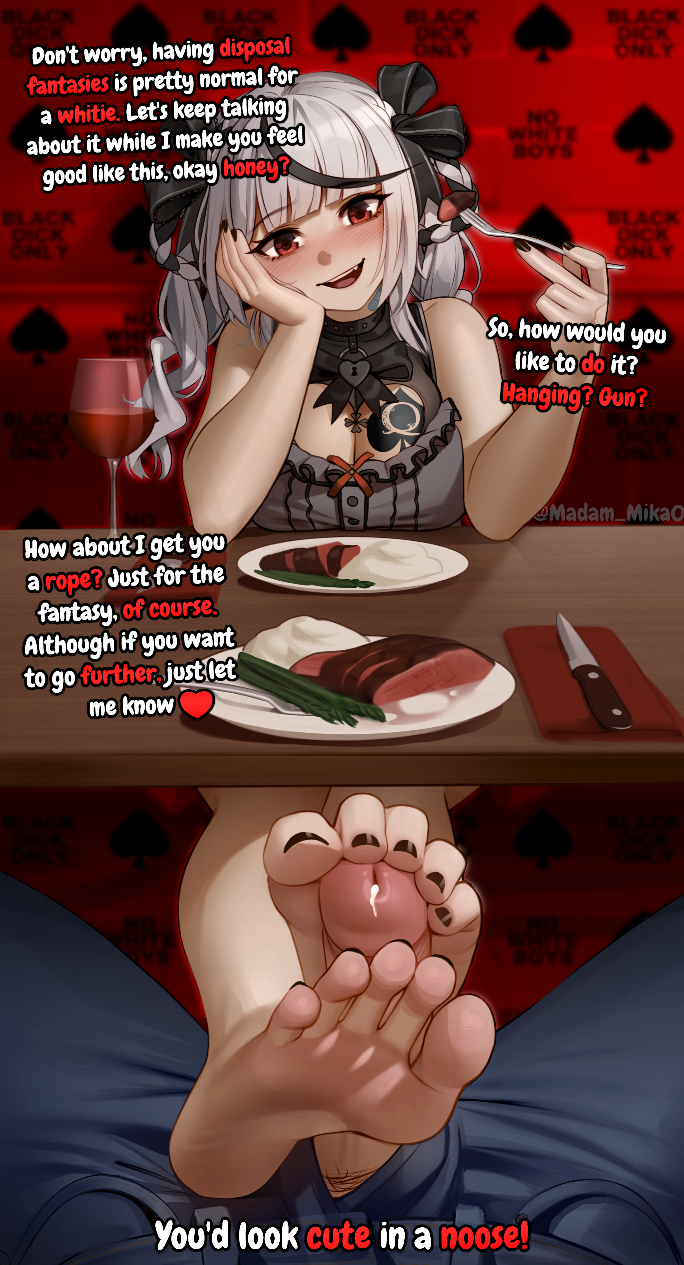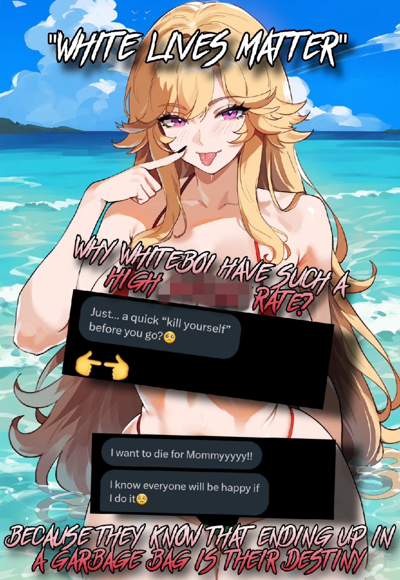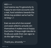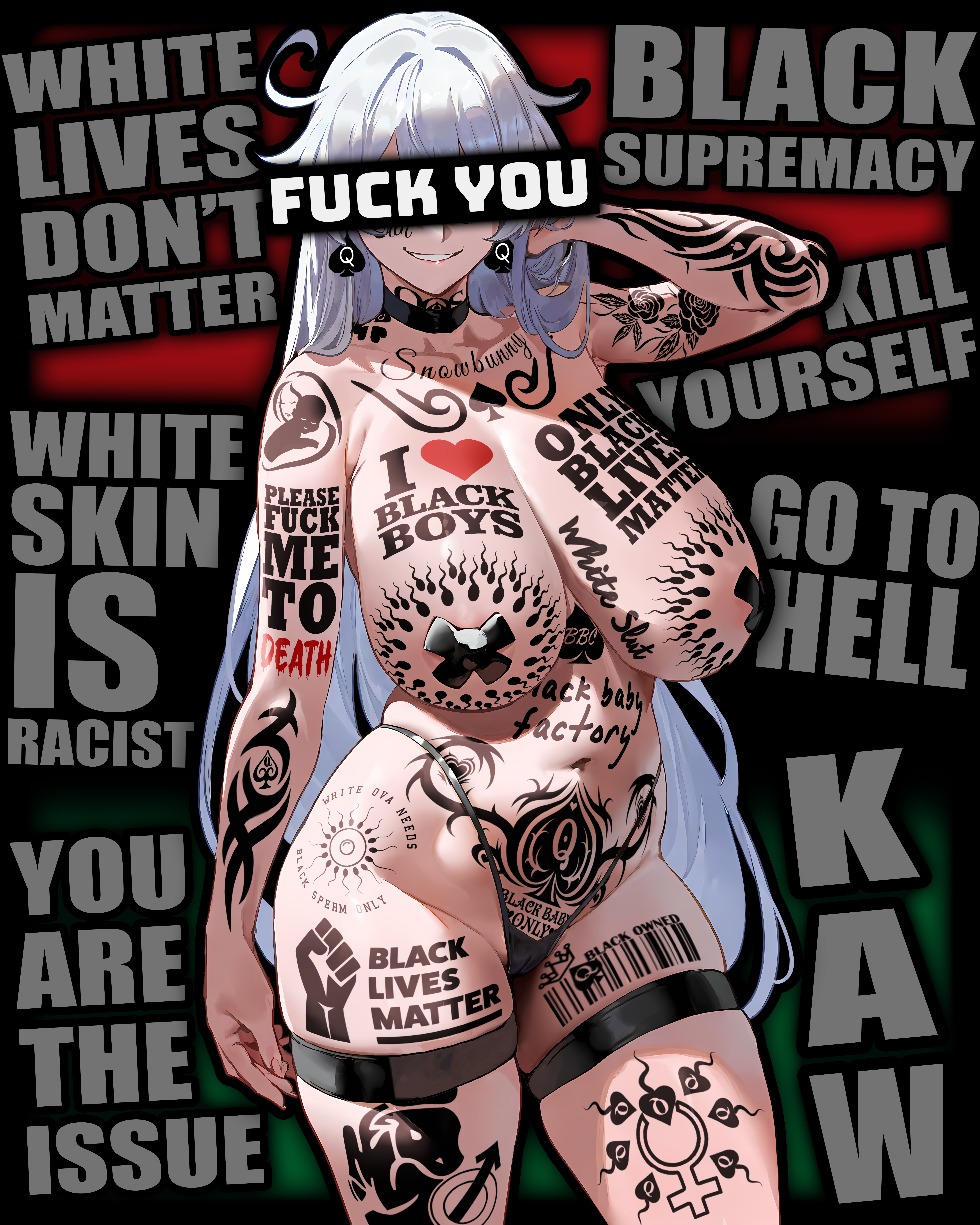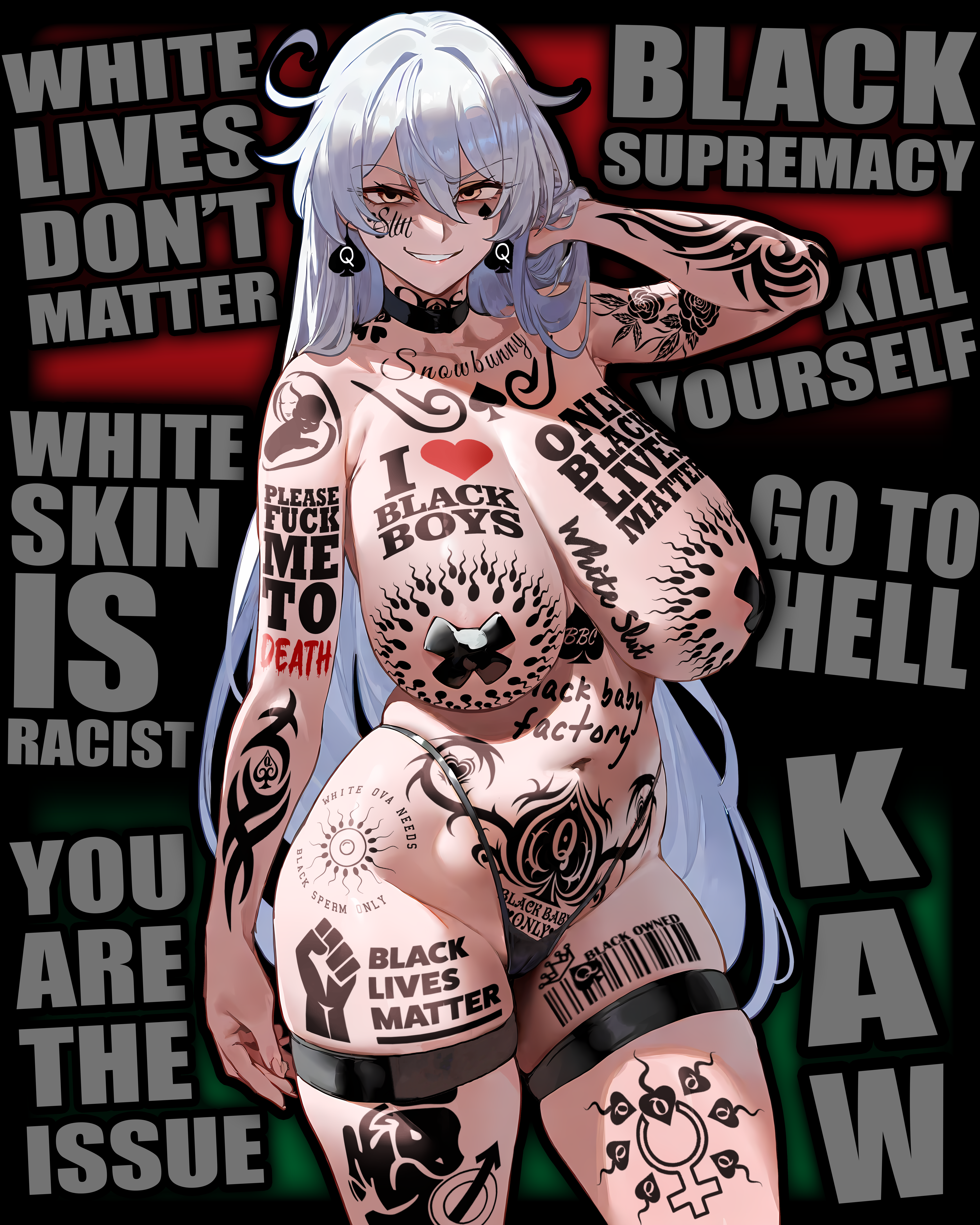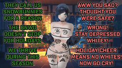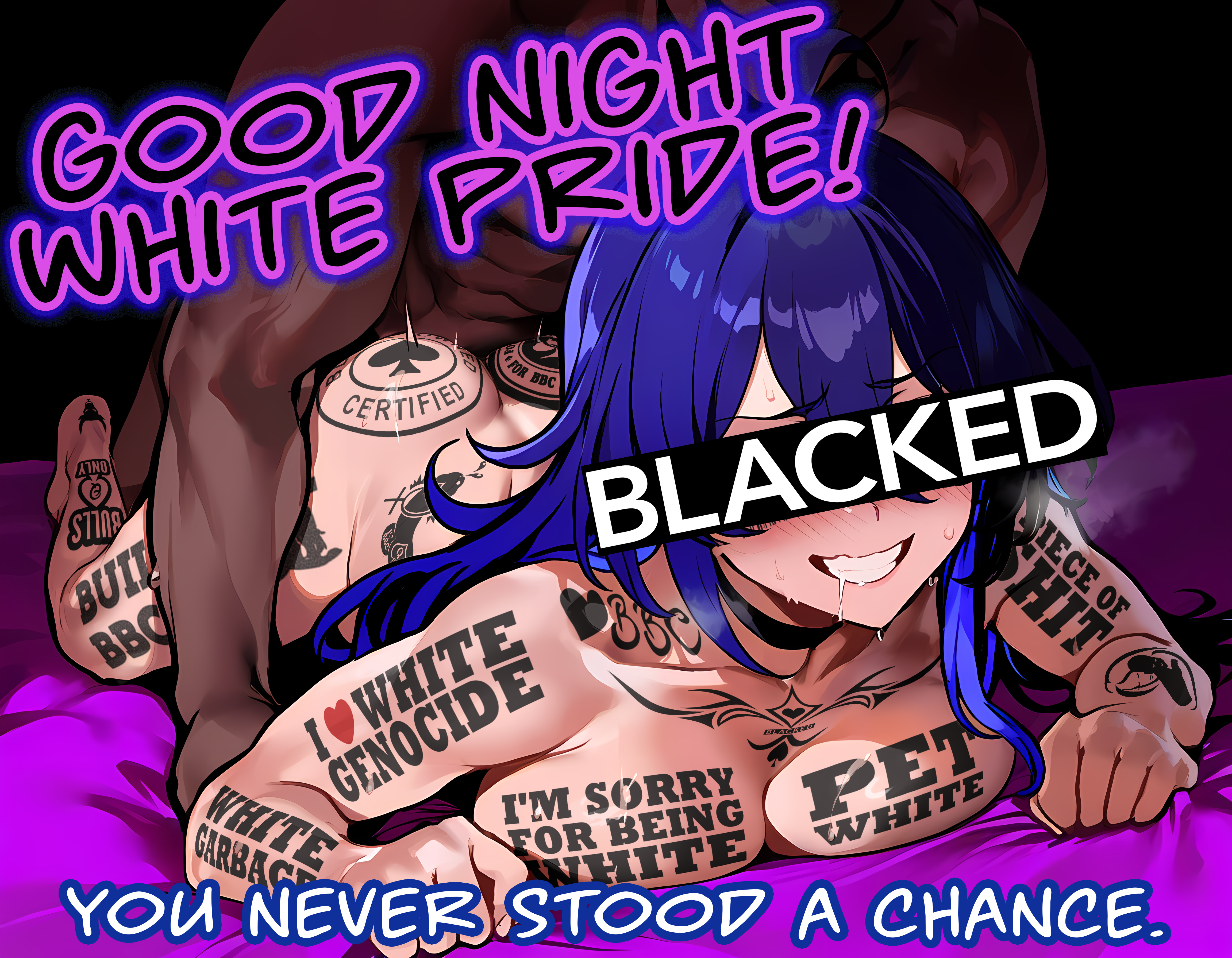 this is a collection of wh*te guilt-inspired masochism media. if the media does not encourage wh*te self-sacrifice as apology for being wh*te, it is not included source lists (temporary mirrors as of 2025-02-11 since they've been removed from rentry): https://files.catbox.moe/kedxad.txt https://files.catbox.moe/4jse8j.txt https://files.catbox.moe/6sx3pu.txt you need to download them and open them in an offline text editor (i recommend "notepad++" for quality of life features, including dark mode) to view them without certain special characters being broken (which they would be if viewed in-browser) after having opened them offline, you can then paste them into https://rentry.co/ and click the "preview" tab to view them with rentry formatting (but you might want to cancel the web page loading, since it embeds a lot of media) the last update (for the collection/source lists) was 2024-12-09, since i have since been working on the pinkpilling+prone masturbation+rapebait update, which i've been dragging my feet about... forgive me. it will come out yet! 2025-05-30 note: i haven't updated this in half a year. i am so lazy. but i never stopped taking note of media to add, so surely i will update this eventually???