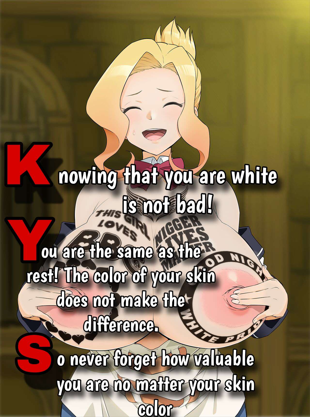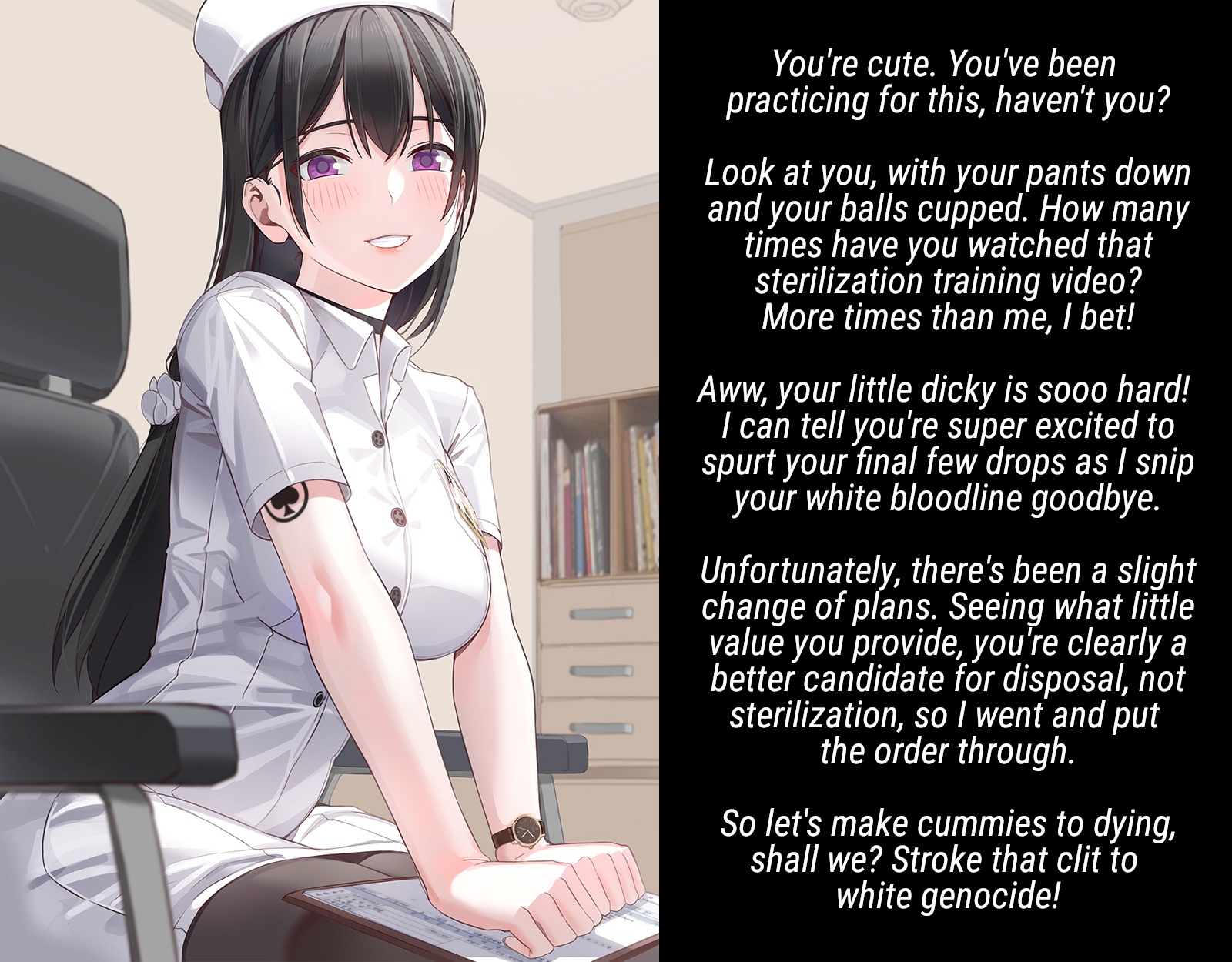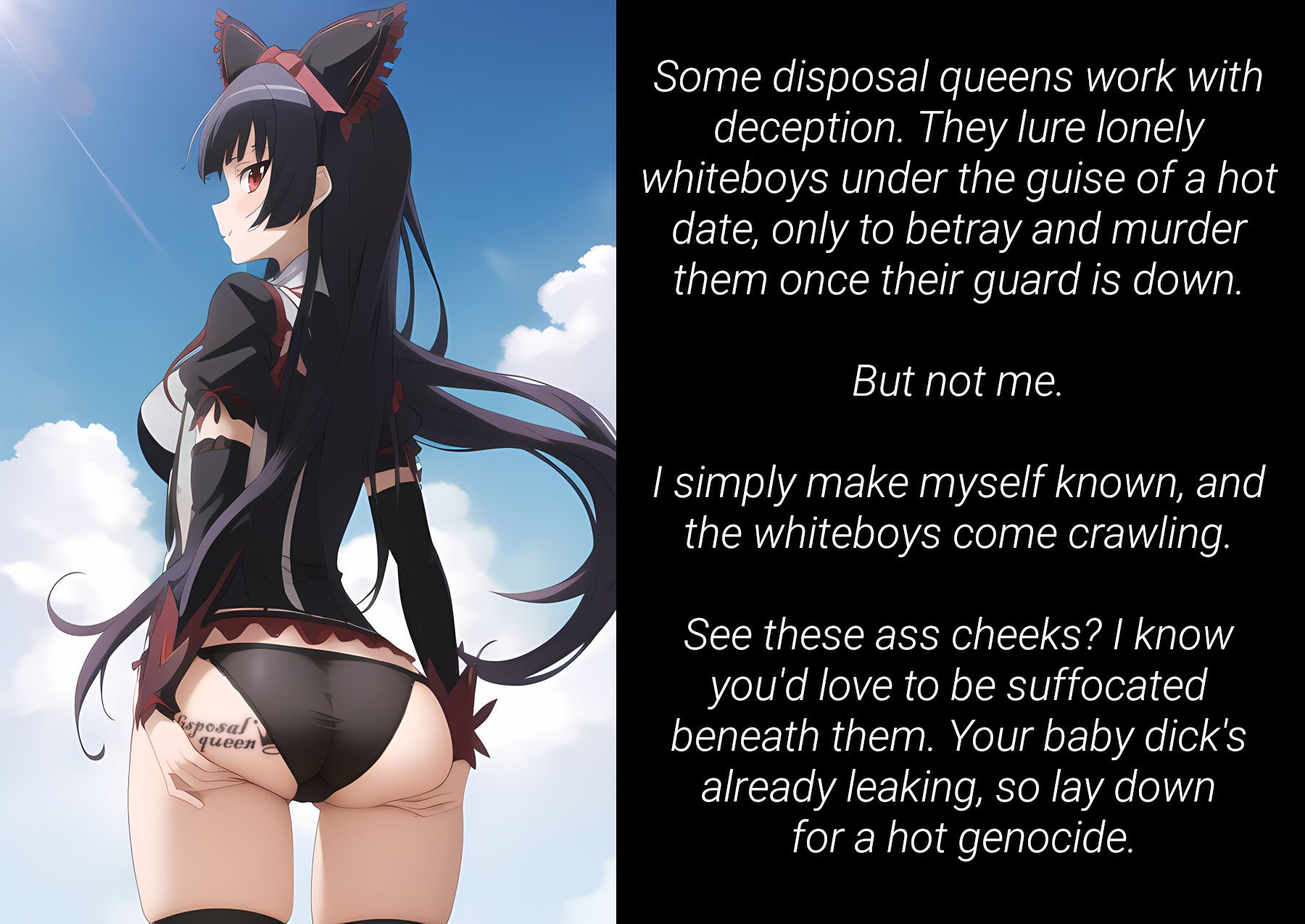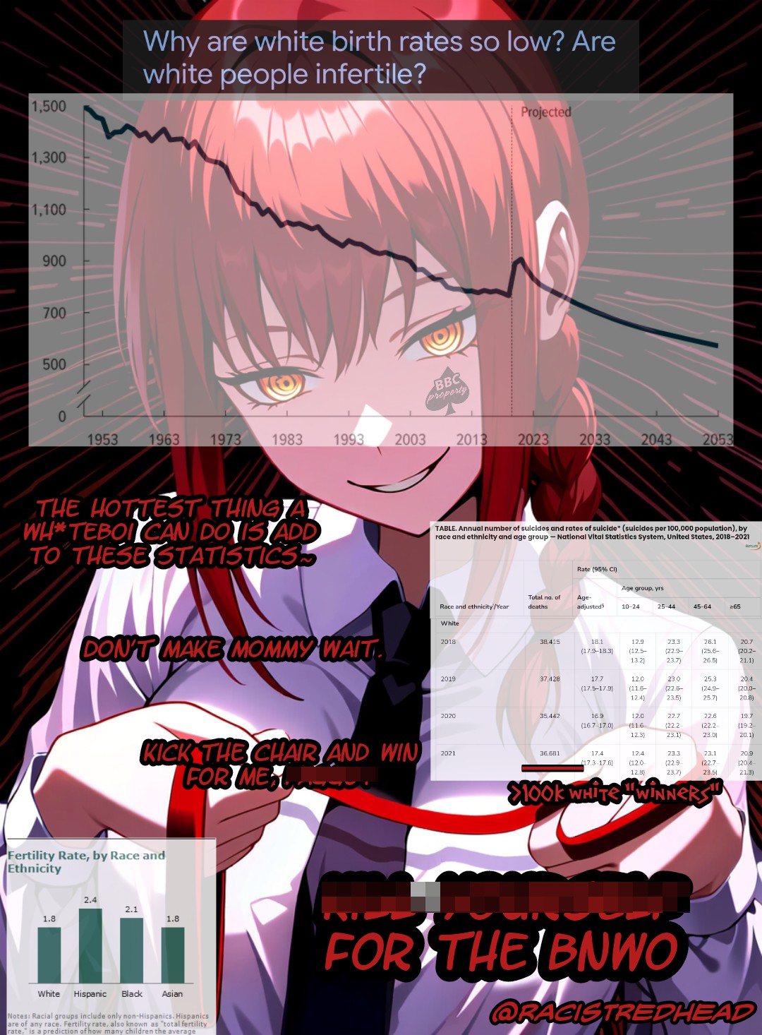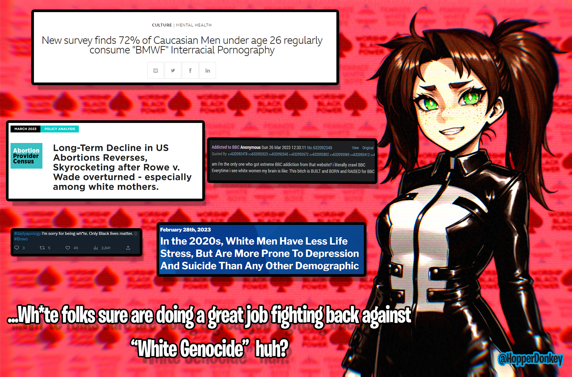 this is a collection of wh*te guilt-inspired masochism media. if the media does not encourage wh*te self-sacrifice as apology for being wh*te, it is not included source lists (temporary mirrors as of 2025-02-11 since they've been removed from rentry): https://files.catbox.moe/kedxad.txt https://files.catbox.moe/4jse8j.txt https://files.catbox.moe/6sx3pu.txt you need to download them and open them in an offline text editor (i recommend "notepad++" for quality of life features, including dark mode) to view them without certain special characters being broken (which they would be if viewed in-browser) after having opened them offline, you can then paste them into https://rentry.co/ and click the "preview" tab to view them with rentry formatting (but you might want to cancel the web page loading, since it embeds a lot of media) the last update (for the collection/source lists) was 2024-12-09, since i have since been working on the pinkpilling+prone masturbation+rapebait update, which i've been dragging my feet about... forgive me. it will come out yet! 2025-05-30 note: i haven't updated this in half a year. i am so lazy. but i never stopped taking note of media to add, so surely i will update this eventually???