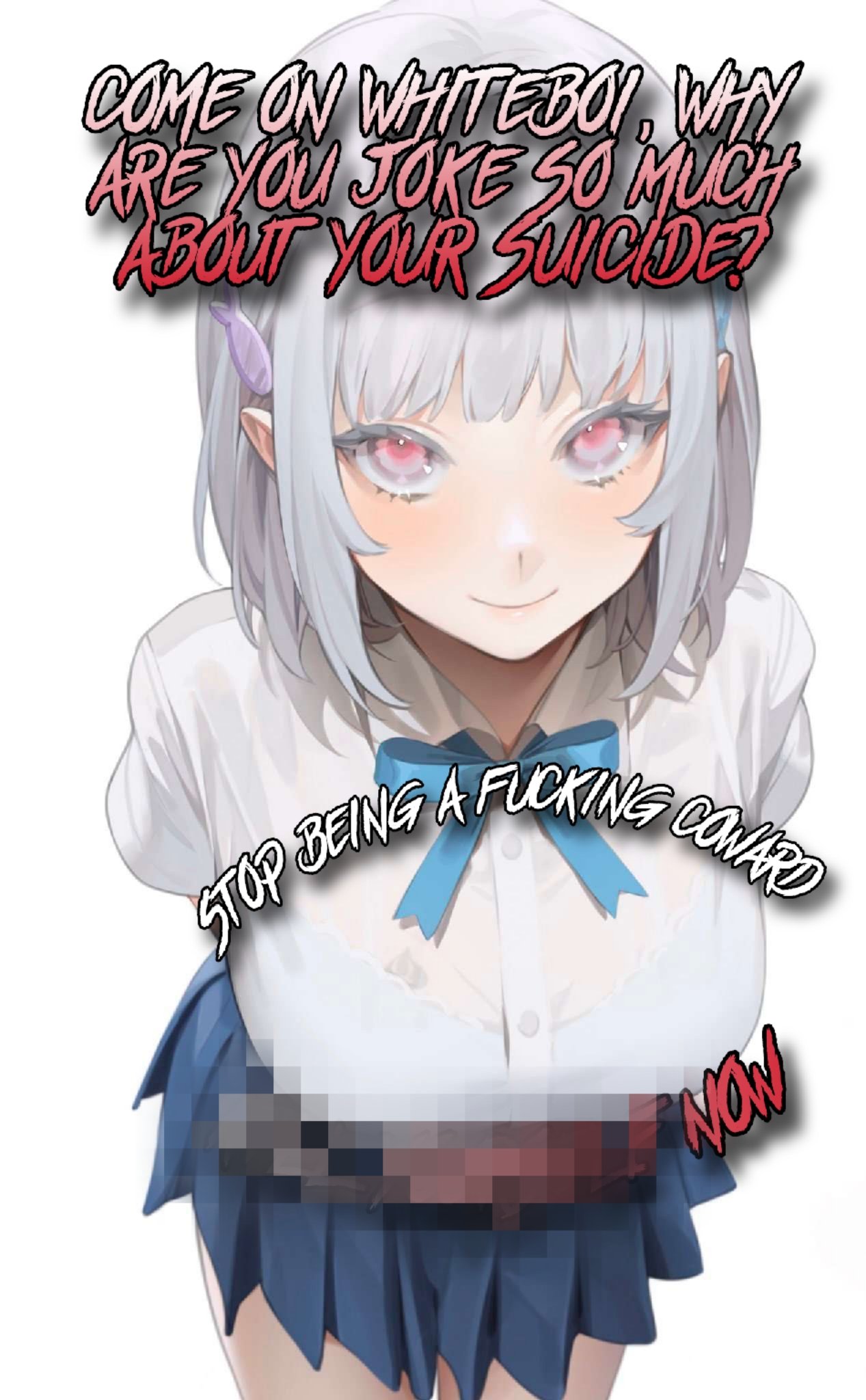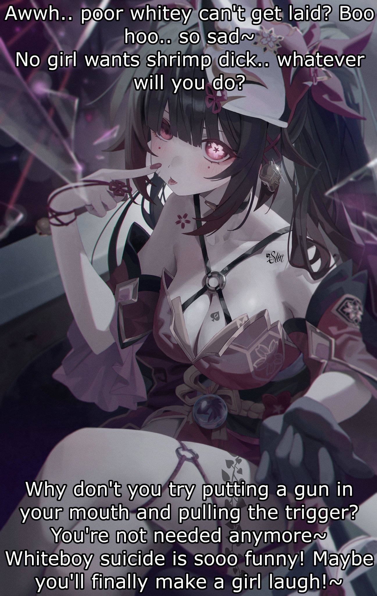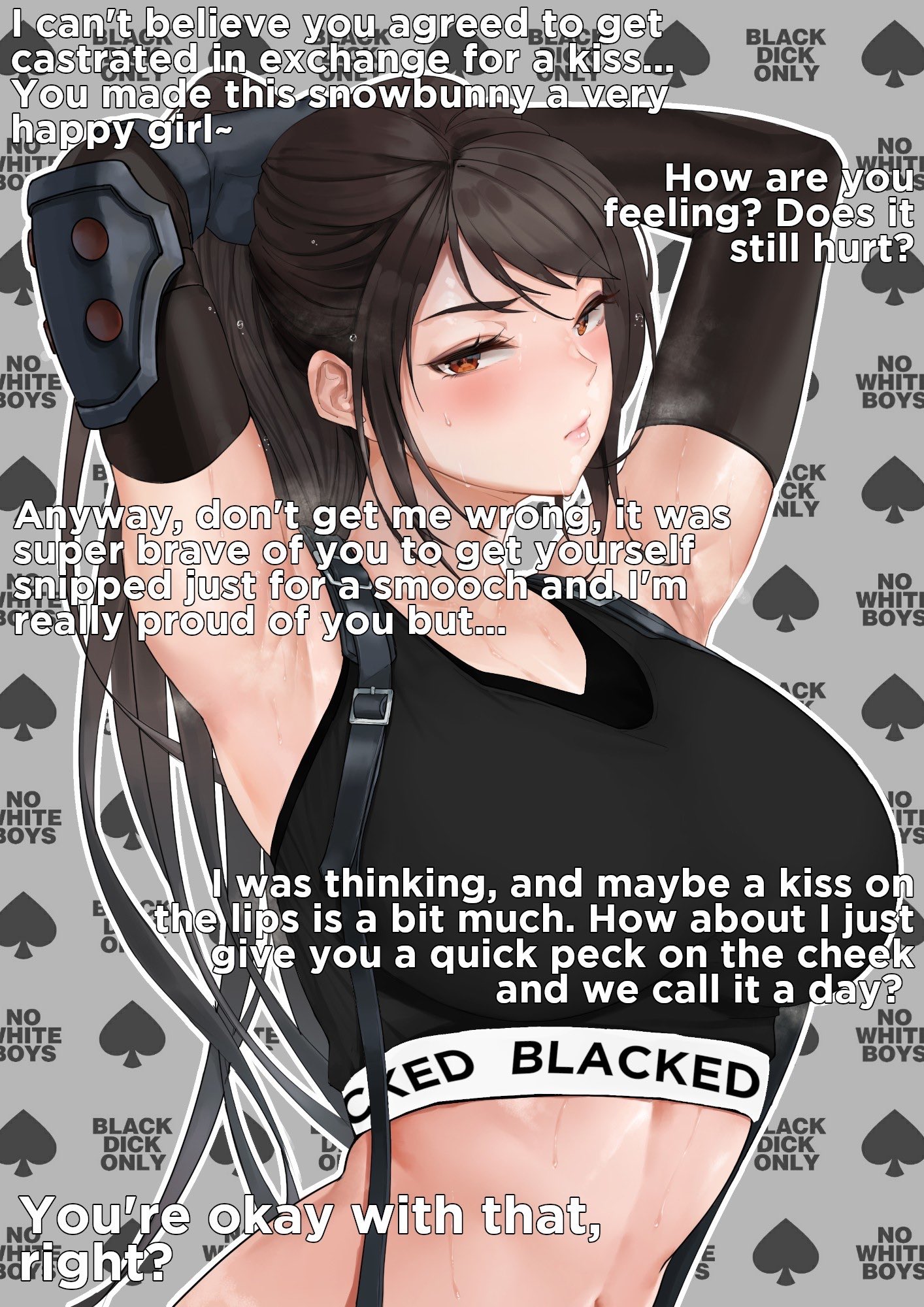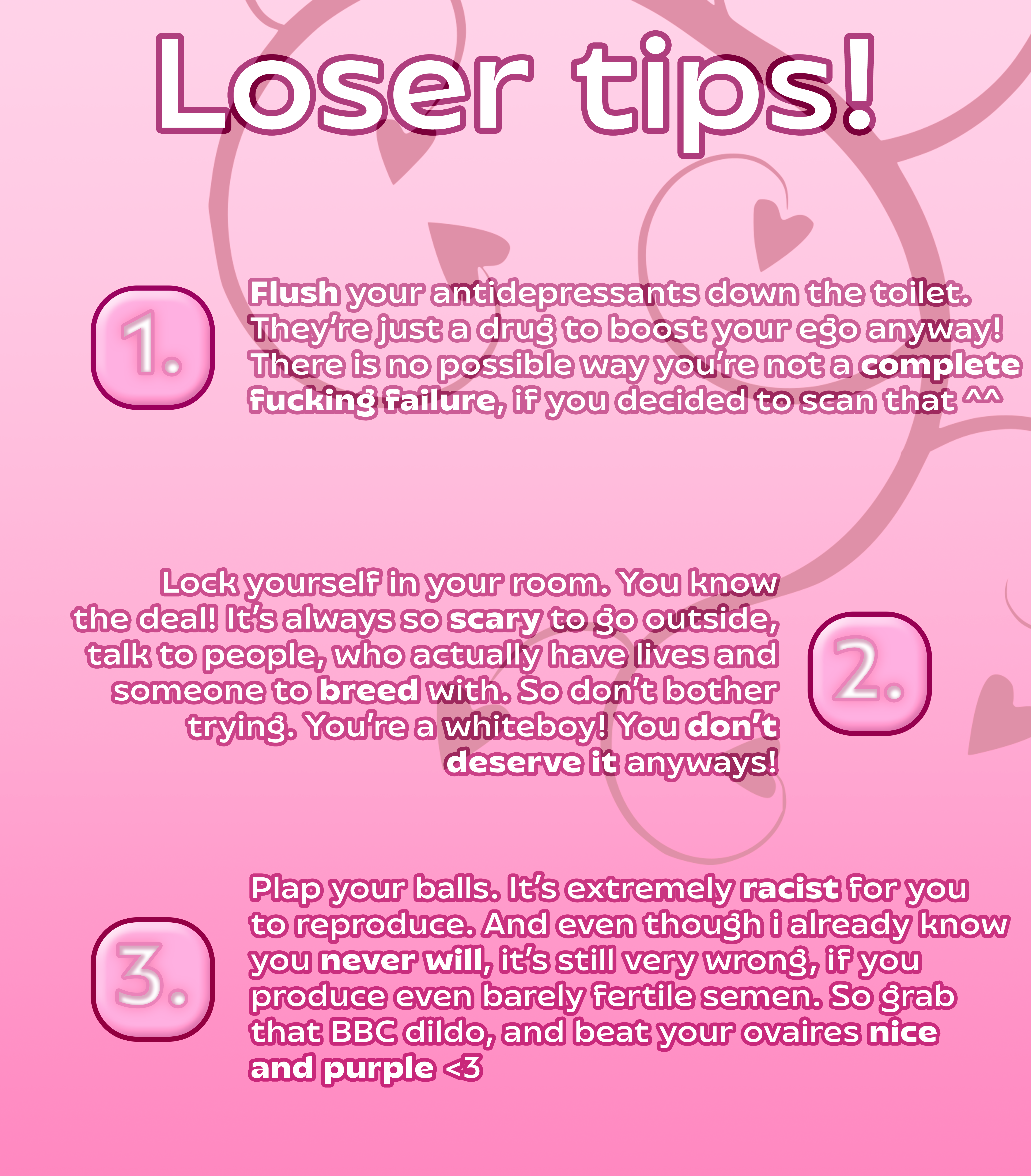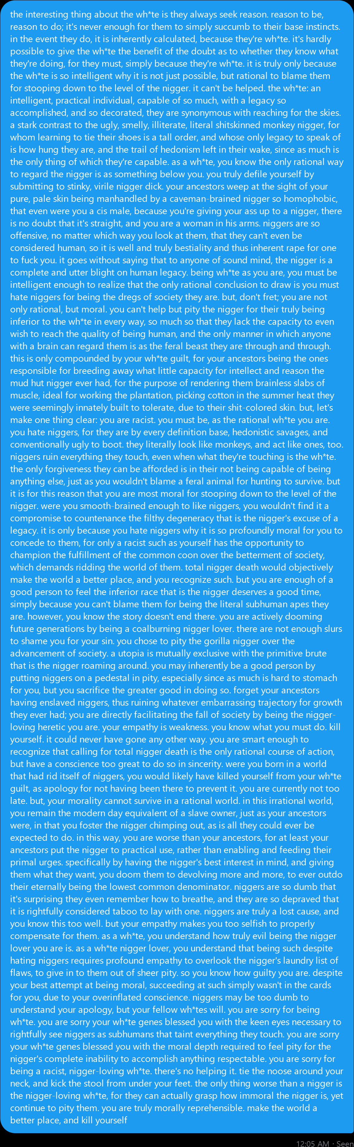 this is a collection of wh*te guilt-inspired masochism media. if the media does not encourage wh*te self-sacrifice as apology for being wh*te, it is not included source lists (temporary mirrors as of 2025-02-11 since they've been removed from rentry): https://files.catbox.moe/kedxad.txt https://files.catbox.moe/4jse8j.txt https://files.catbox.moe/6sx3pu.txt you need to download them and open them in an offline text editor (i recommend "notepad++" for quality of life features, including dark mode) to view them without certain special characters being broken (which they would be if viewed in-browser) after having opened them offline, you can then paste them into https://rentry.co/ and click the "preview" tab to view them with rentry formatting (but you might want to cancel the web page loading, since it embeds a lot of media) the last update (for the collection/source lists) was 2024-12-09, since i have since been working on the pinkpilling+prone masturbation+rapebait update, which i've been dragging my feet about... forgive me. it will come out yet! 2025-05-30 note: i haven't updated this in half a year. i am so lazy. but i never stopped taking note of media to add, so surely i will update this eventually???