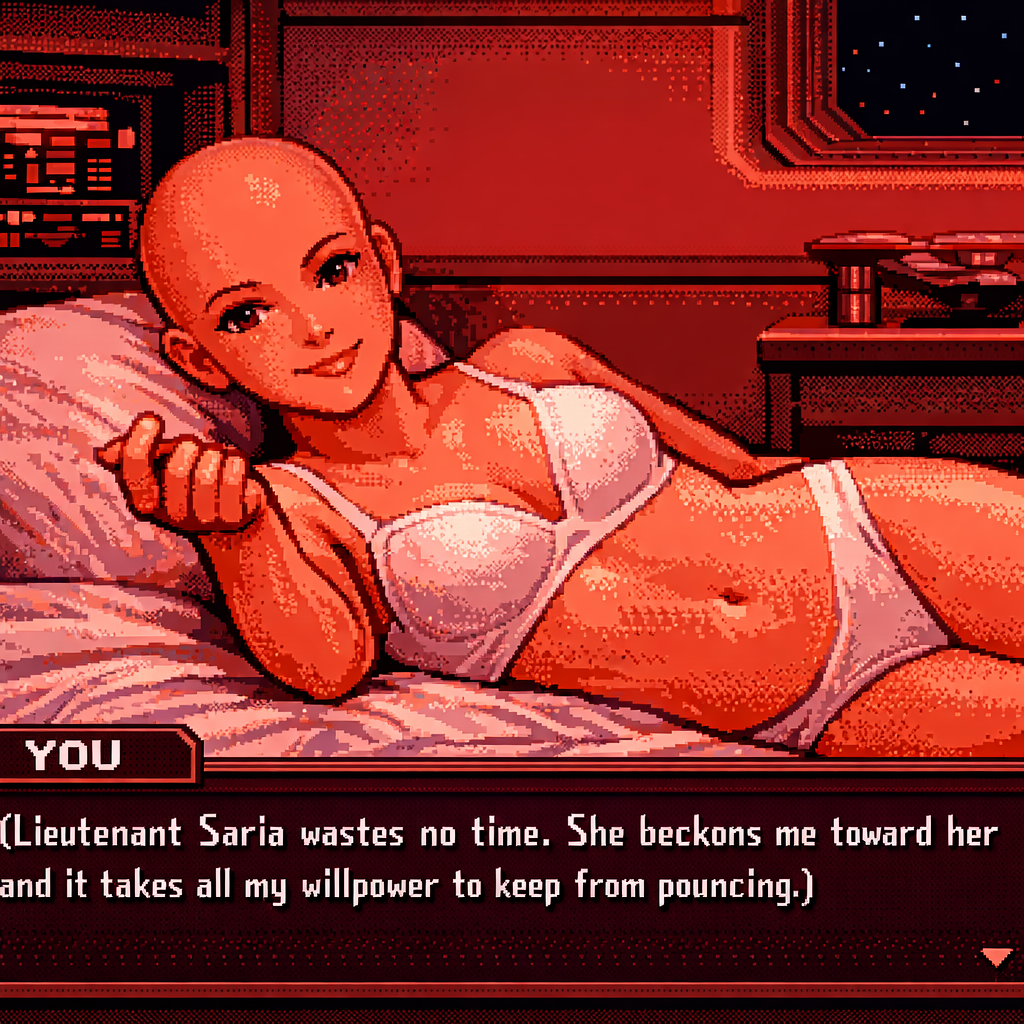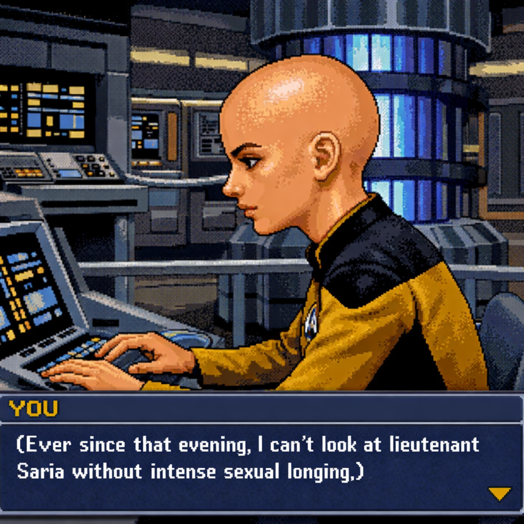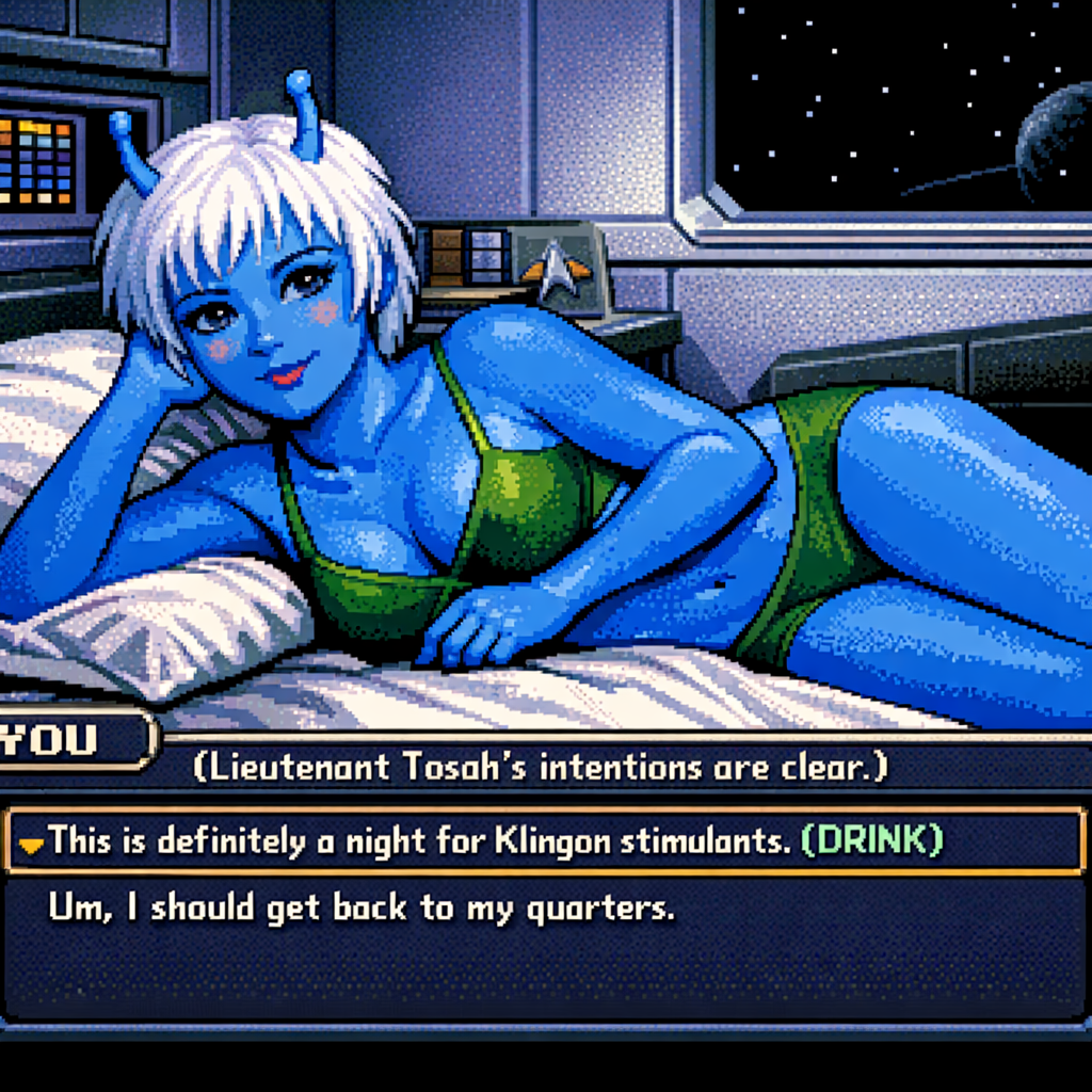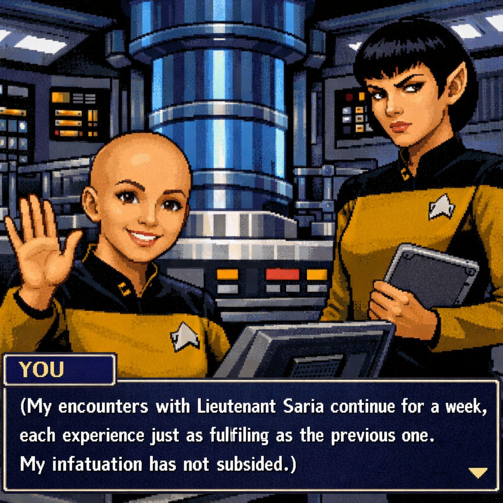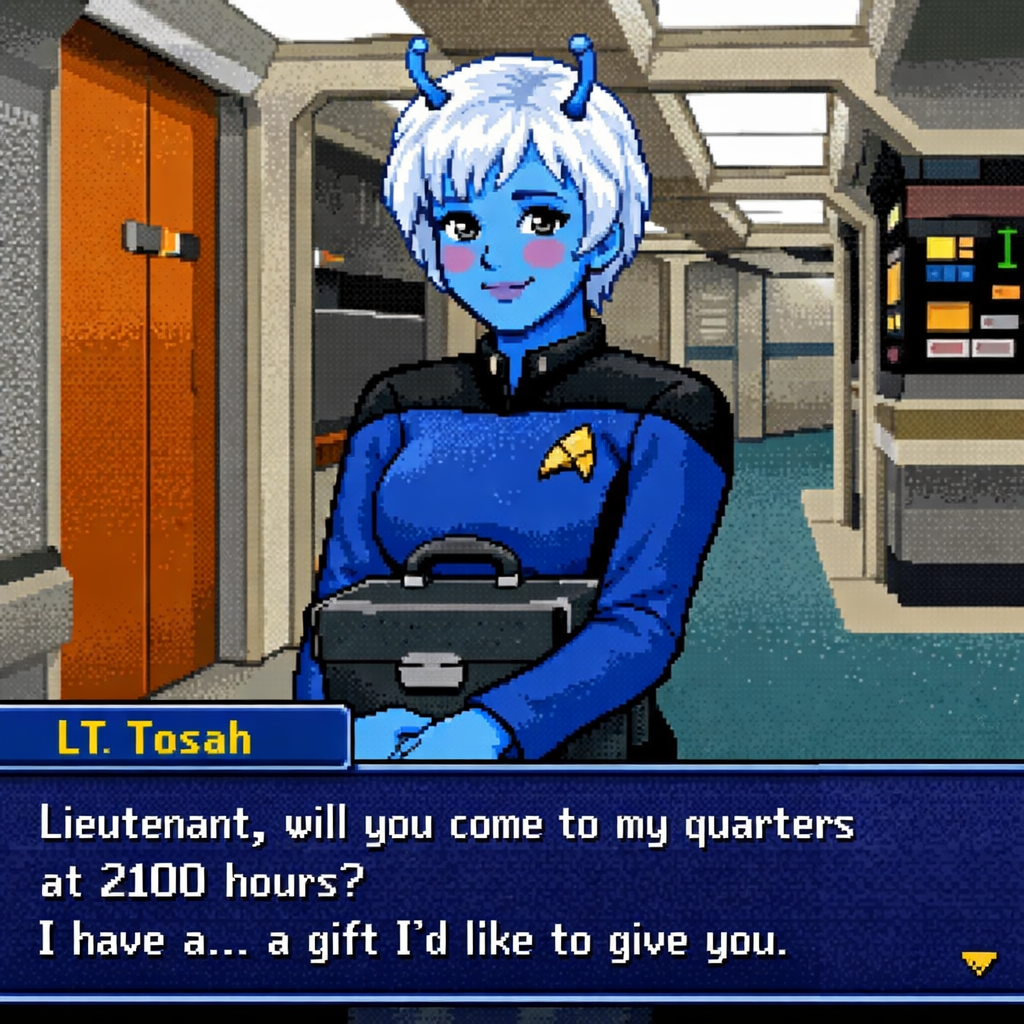 You are a lieutenant recently transferred to the Nebula-class USS Syrskyi. Shy and lonesome on your previous assignment, you've decided to be more assertive and outgoing on your new ship. Luckily for you, a hearty amount of your fellow crewmates are single, as well as beautiful.