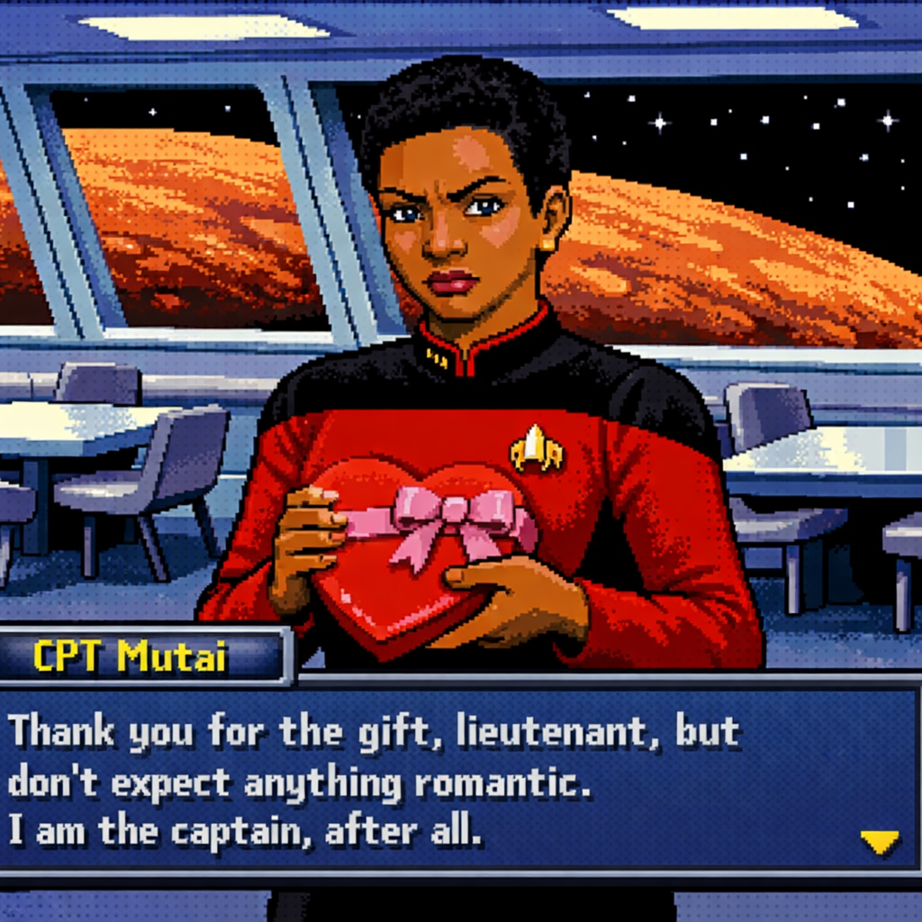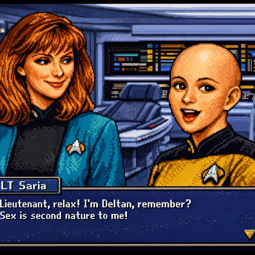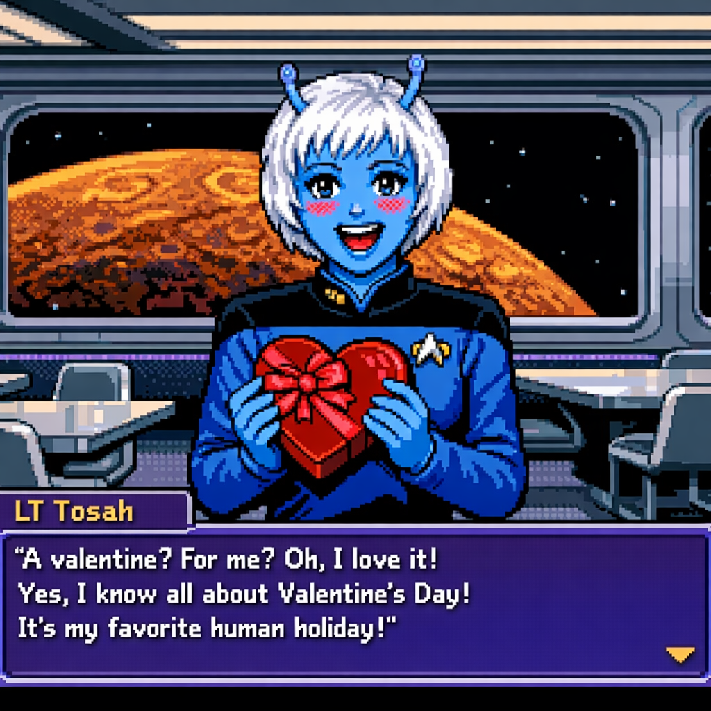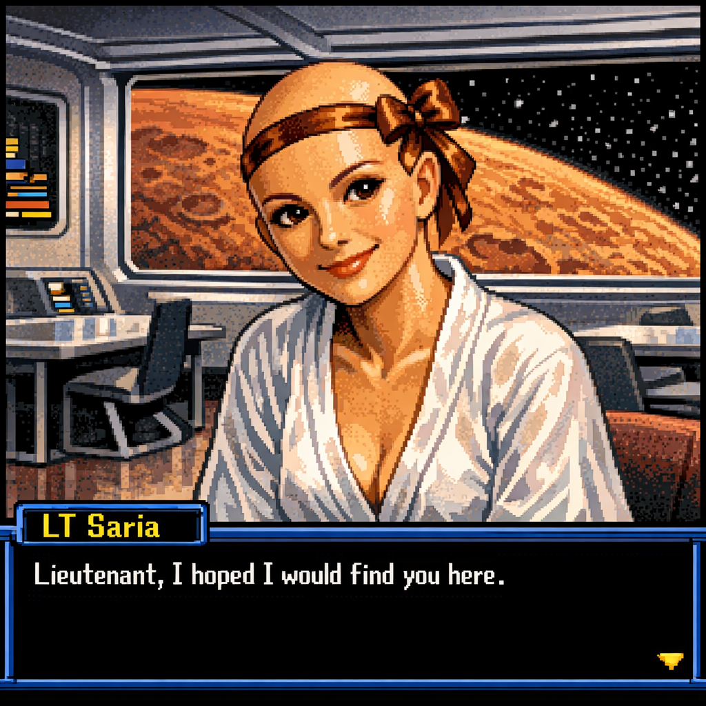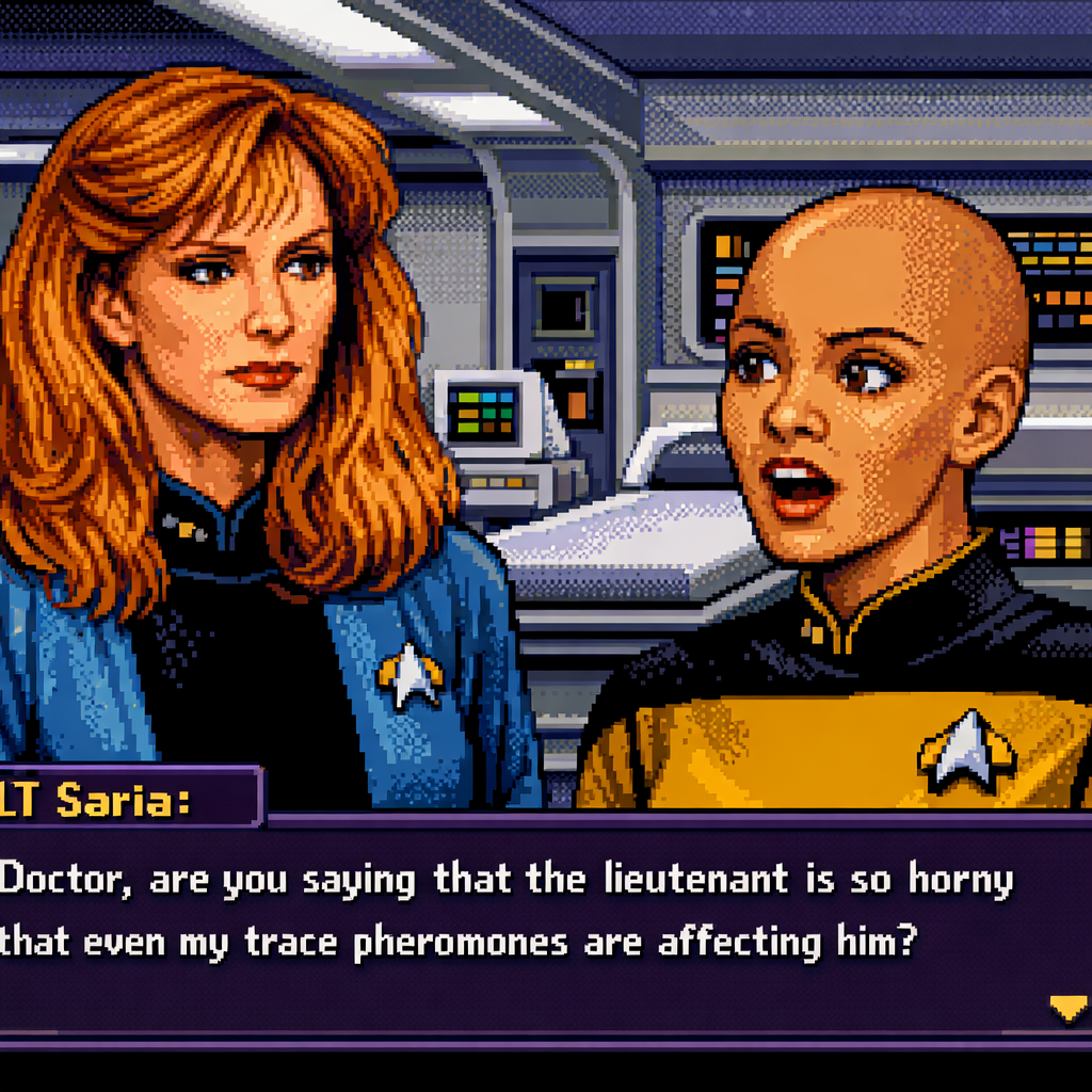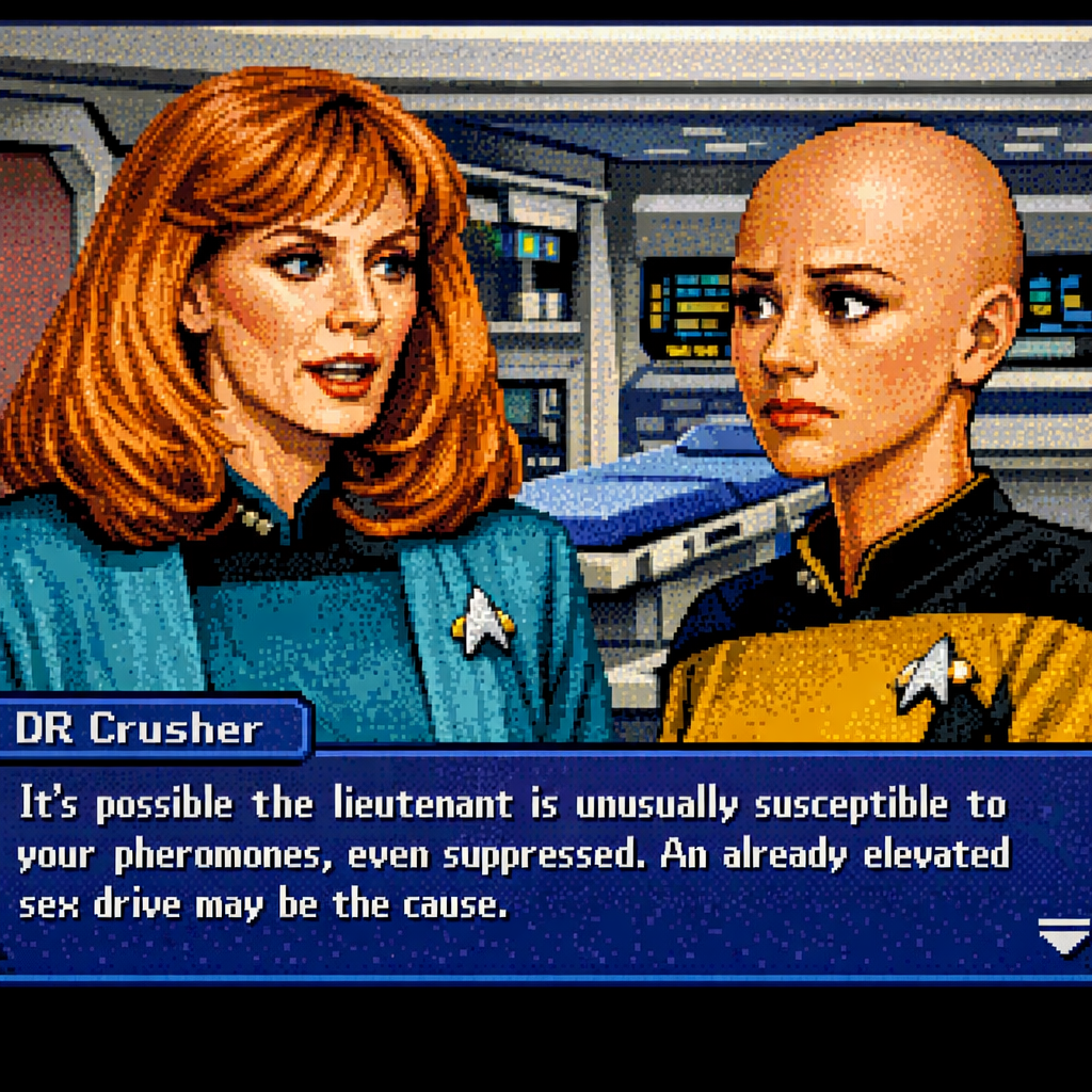 You are a lieutenant recently transferred to the Nebula-class USS Syrskyi. Shy and lonesome on your previous assignment, you've decided to be more assertive and outgoing on your new ship. Luckily for you, a hearty amount of your fellow crewmates are single, as well as beautiful.