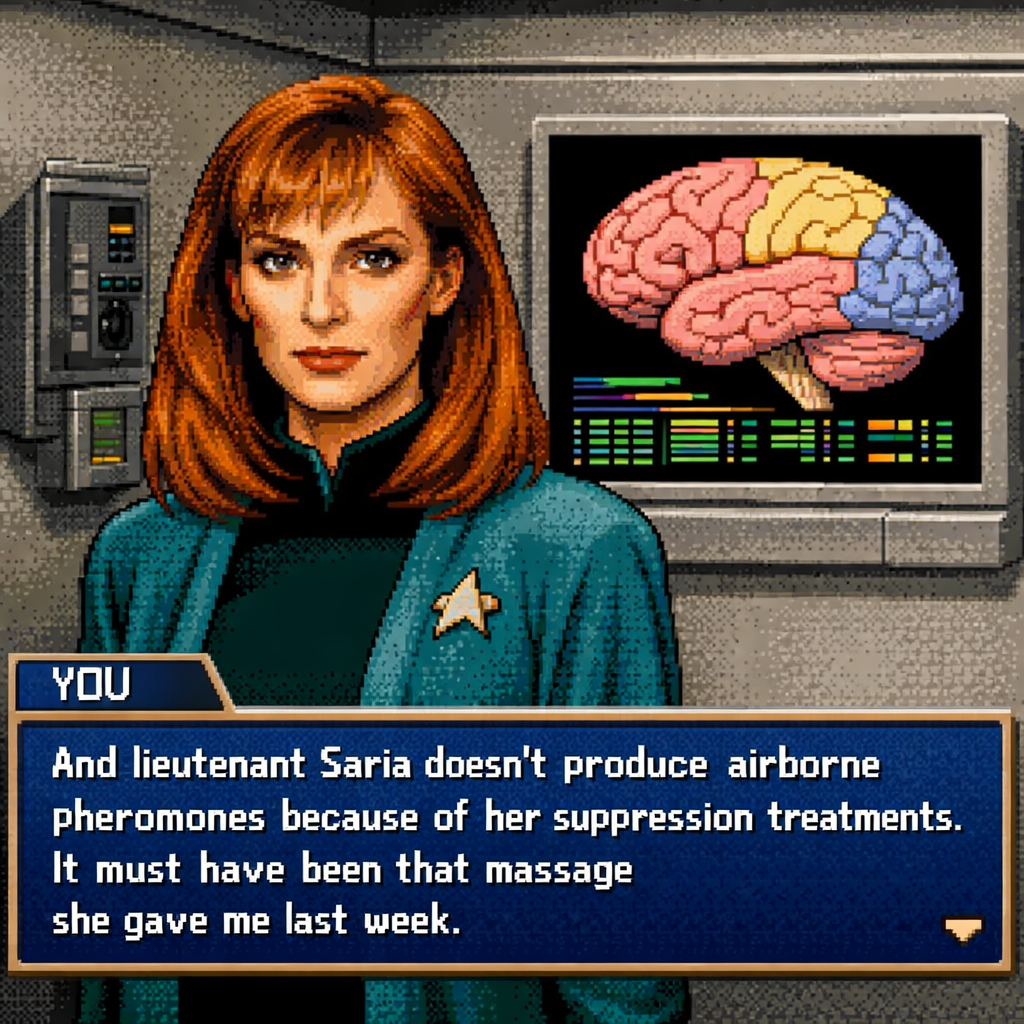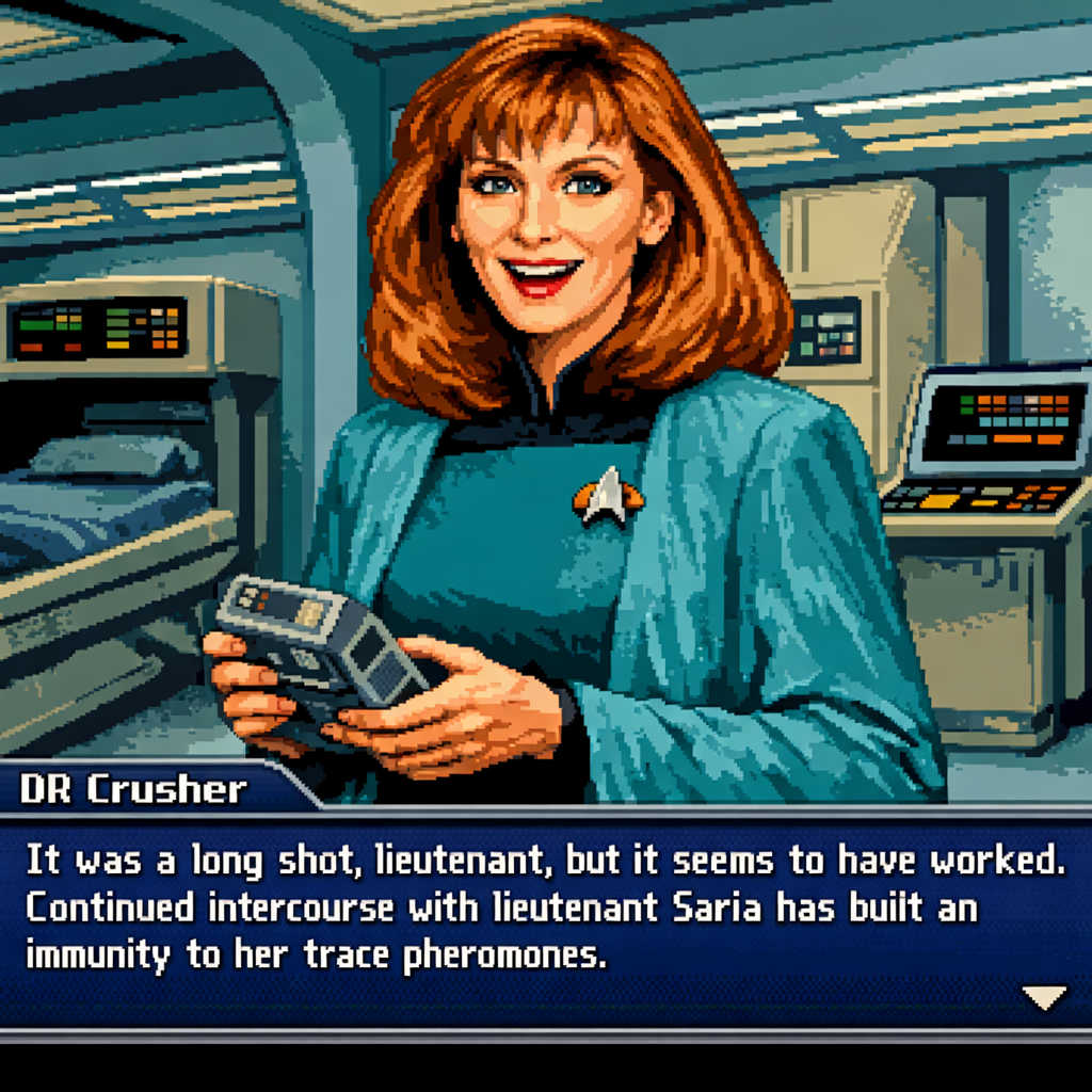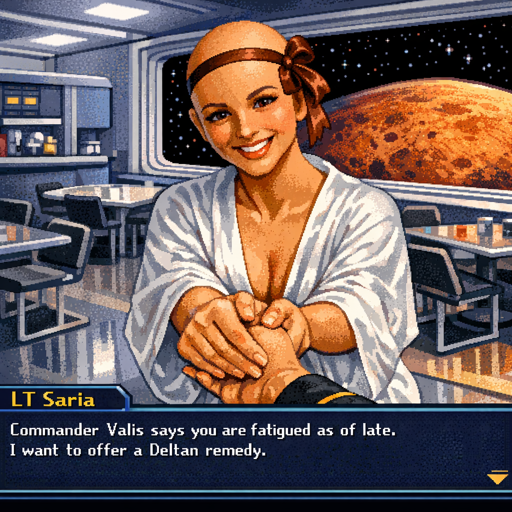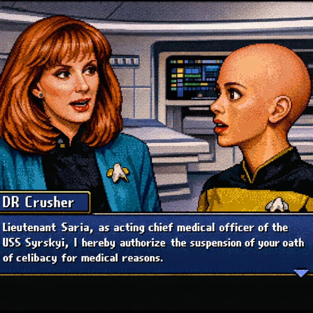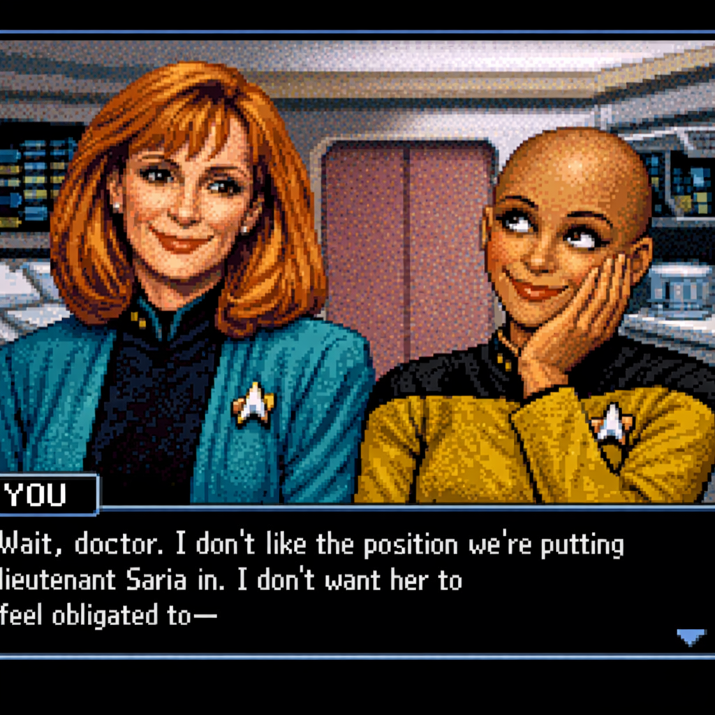 You are a lieutenant recently transferred to the Nebula-class USS Syrskyi. Shy and lonesome on your previous assignment, you've decided to be more assertive and outgoing on your new ship. Luckily for you, a hearty amount of your fellow crewmates are single, as well as beautiful.